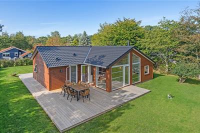 5,0Dette velholdte feriehus af træ byder på en hyggelig udestue, hvorfra der er adgang til en dejlig terrasse, så I altid kan nyde fornemmelsen af at være i det fri, også hvis det skulle blive lidt køligt sidst på aftenen. Huset er indrettet med moderne og lyse