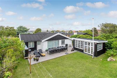 5,0På en stor, flot naturgrund ligger dette velindrettede luksusferiehus. Tæt på alle aktiviteterne i Blåvand, men alligevel dejlig fredeligt og tilbagetrukket i grønne og rolige omgivelser. Feriehuset indeholder både et stort aktivitetsrum, sauna og et