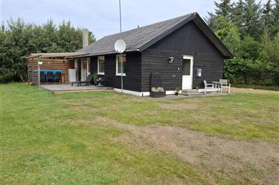 4,5Ældre delvis moderniseret fritidshus med stor græsgrund med gynge og sandkasse. Køkkenet har opvaskemaskine og mikroovn. I stuen er der DVD-afspiller, fjernsyn med parabol, radio og brændeovn. Der er barnestol og barneseng i huset. Der er tre soveværelser,
