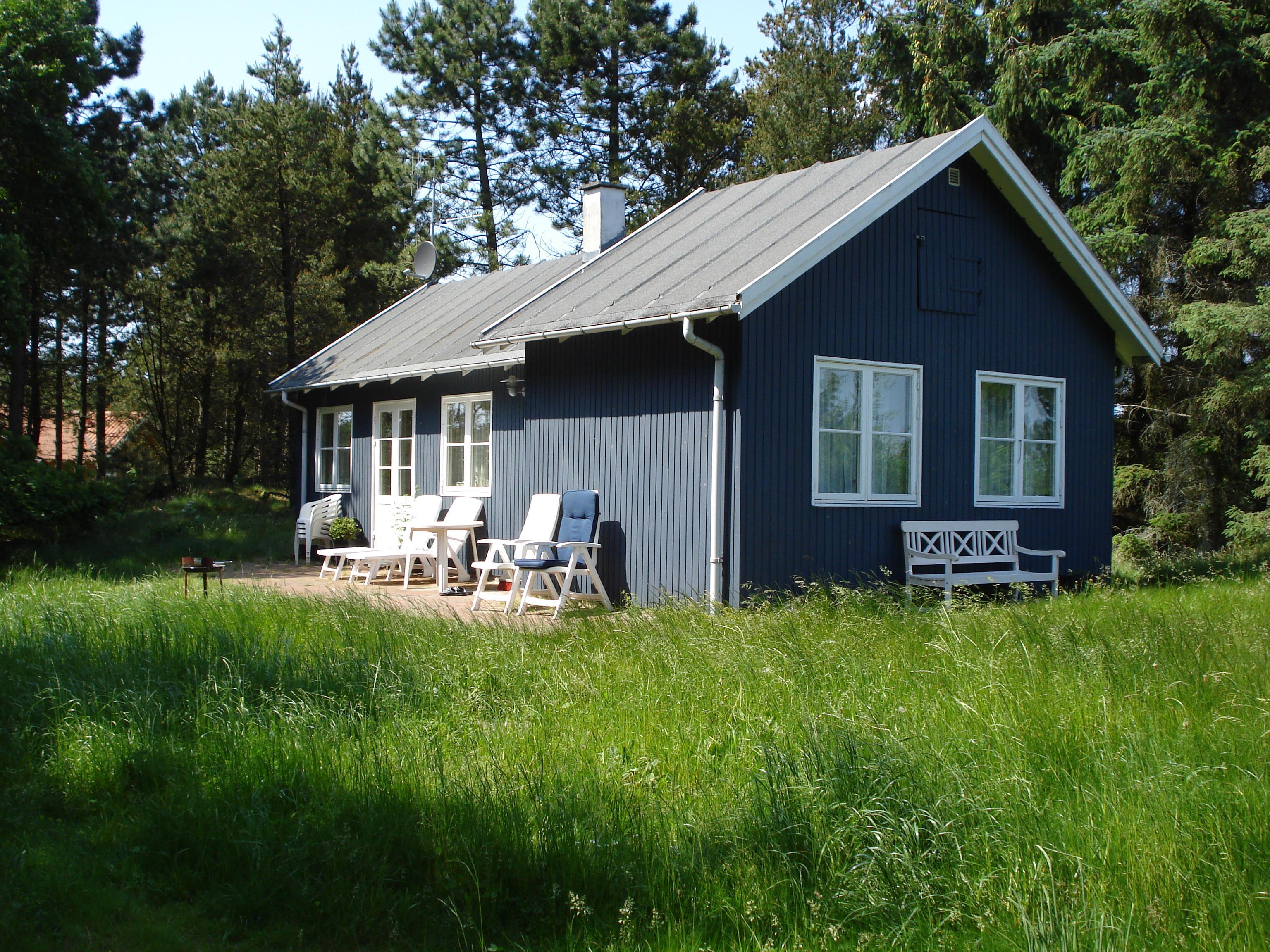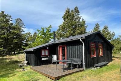 4,5Ældre delvis moderniseret fritidshus med stor græsgrund med gynge og sandkasse. Køkkenet har opvaskemaskine og mikroovn. I stuen er der DVD-afspiller, fjernsyn med parabol, radio og brændeovn. Der er barnestol og barneseng i huset. Der er tre soveværelser,