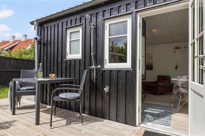 3,0En kort tur til fods fra Skagens Museum og den berømte Sønderstrand ligger ferieboligen som anneks til større familiehus. Hyggelig, lille "lomme" med overdækket terrasse samt adgang til have. På terrassen findes både havemøbler og grill. Indendørs er boligen