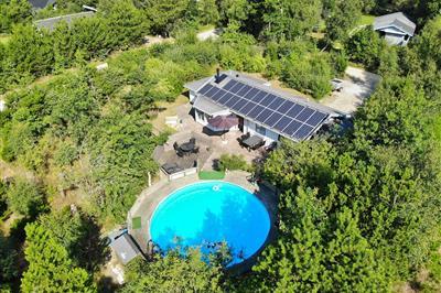 3,0Omgivet af skovens træer, blandt brændestabler og stier, finder I dette hyggelige poolhus - med udendørs svømmebassin, som kan benyttes i hovedsæsonen (30.5.-29.8.2026). Sommerhuset ligger skønt med få minutters gang til indkøbsmulighed og få minutters kørsel