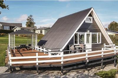 3,6Dette feriehus i træ ligger i et roligt hjørne af Hejlsmindes sommerhusområde. Huset er et A-hus og er velindrettet. Udenfor er der en dejlig stor træterrasse, hvor I kan nyde solen hele dagen. Max. loftshøjde på 1. sal er 1,8 m. Max længde på sengene er 190