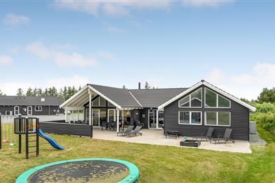 4,7Familievenligt luksussommerhus til 24 personer i populære Blåvand med faciliteter ud over det sædvanlige Dette store sommerhus er perfekt til familier og venner, som sætter pris på masser af aktiviteter til både store og små. Husets udendørs multibane