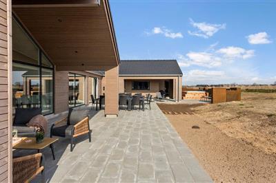 Stort sommerhus med fælles legeplads ved Skåstrup Strand til 20 personer I et dejligt sommerhusområde nær Skåstrup Strand finder I dette rummelige Sammenhus™, hvor udeliv, wellness og sjove aktiviteter går hånd i hånd. Huset er skabt til jer, der vil