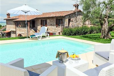 4,0Indlejret i naturen og med smuk udsigt til havet og Massaciuccolisøen venter dette typisk toskanske landhus på jer, med privat pool og hyggelige udendørsområder. I bor blot en kilometer fra Massaciuccoli, en antik romersk bebyggelse, hvor I kan se rester af