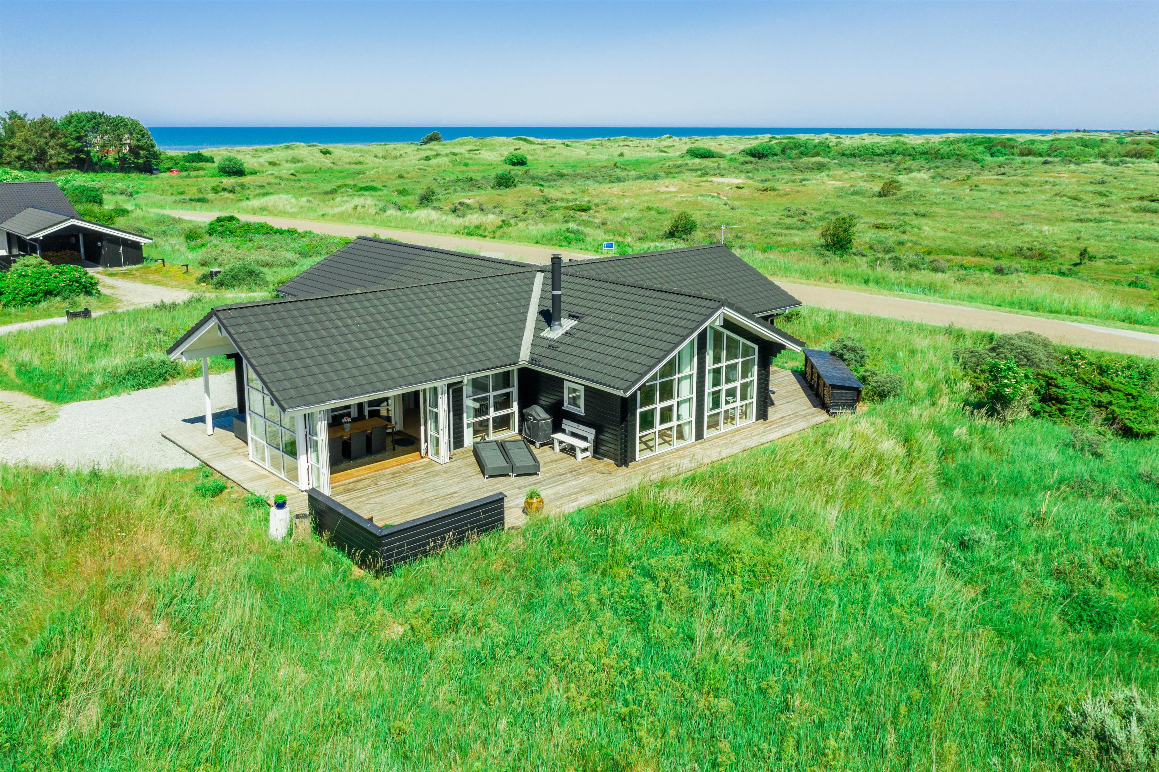 4,5Dette stilfulde og rummelige feriehus, opført i 2020, er designet med fokus på lys, luft og komfort. Med en skøn lukket terrasse som er delvist overdækket, plads til 8 personer og kun 400 meter til stranden er det ideelt for en afslappende ferie tæt på