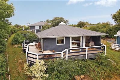 4,4Dette skønne feriehus er usædvanligt dejligt indrettet, har bl.a. dejligt og meget stort badeværelse og et åbent køkken hvorfra der er udsigt ud over havet. Nyd livet og udsigten på terrassen på to af husets sider. Huset ligger højt i en feriepark med flere