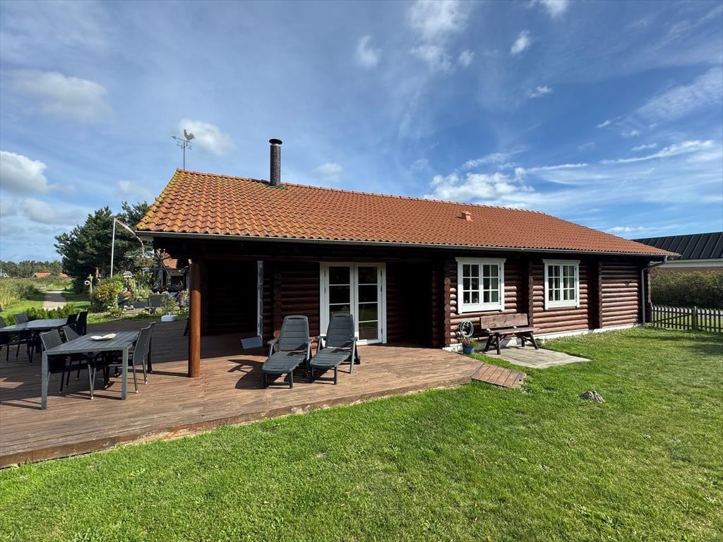 4,2Dette eksklusive og arkitekttegnede bjælkehus med indendørs og udendørs spa er bygget i 2003 af de bedste materialer og ligger på en naturgrund kun 180 m fra en af Danmarks bedste sandbadestrande. Til huset hører såvel åbent som overdækket terrasseareal med