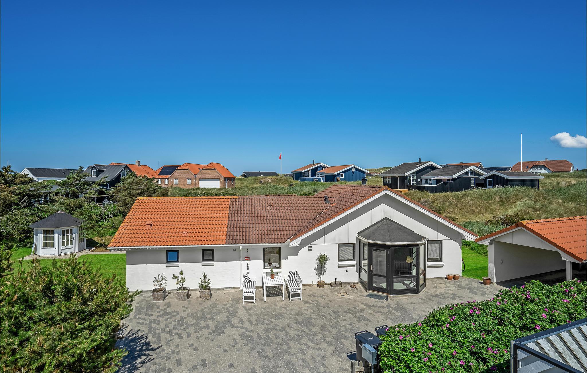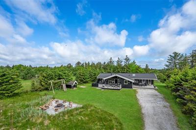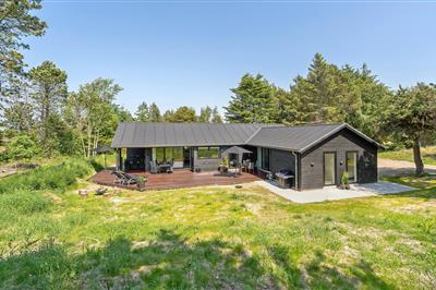4,3Ved et af Danmarks smukkeste kystområder ligger dette feriehus. Ved den kuperede klitgrund er der nedkørsel direkte til stranden. Huset falder godt ind i naturen, da det er bygget af træ og har stråtag. Den store poolafdeling indeholder en stor swimmingpool