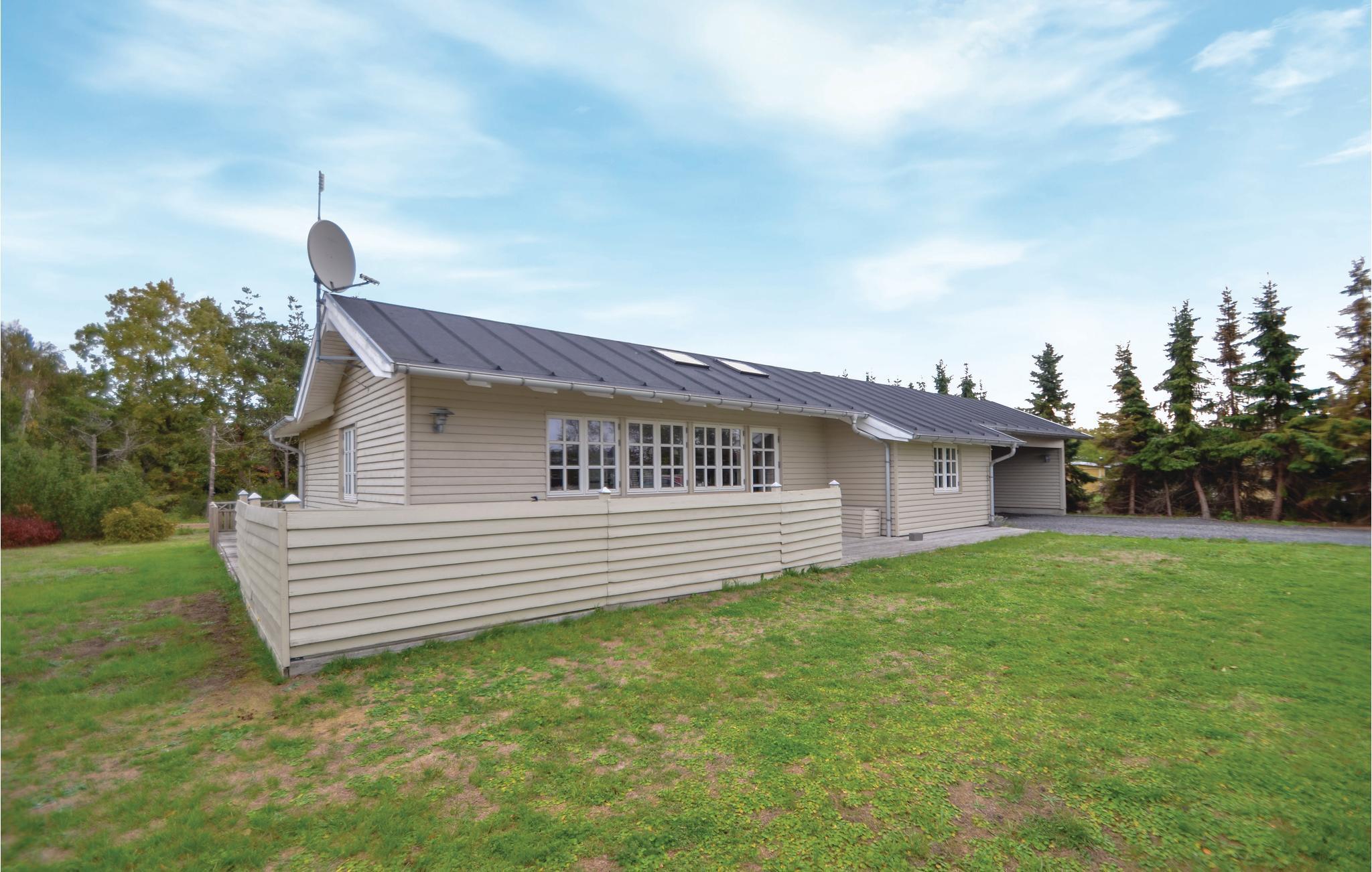 4,4Virkelig lækkert nyopført hus kun 150 m. fra en skøn sandstrand. Huset er på 101 m2 og indeholder en stor lys og velindrettet stue med gode møbler, varmepumpe og biopejs. I forbindelse med stuen finder man den veludstyrede køkkenafdeling med køkkenø. Husets