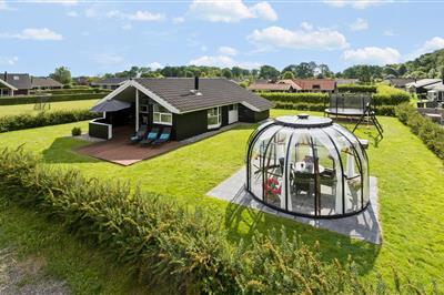 5,0I dejlig roligt og udbygget feriehus område ligger dette velindrettede feriehus. Ved stranden er der rigtig god badebro der kan benyttes i sæsonen. Der er flere gode grønne pladser i feriehusområdet og nogle af dem med legeredskaber. Der er ikke langt til