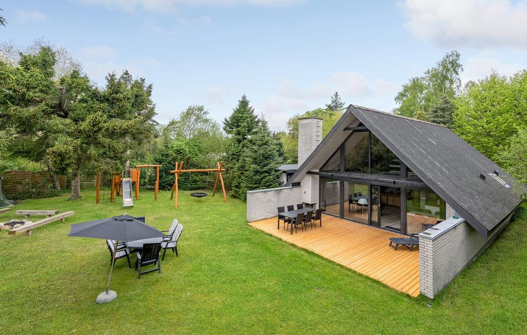 4,3Flot feriehushus i træ med bl.a. swimmingpool, bygget i 2012, beliggende på en stor naturgrund med god plads til udendørs aktiviteter. Til huset hører et stort og til dels overdækket terrasseareal med havemøbler. Skøn pool-afdeling med gulvvarme,