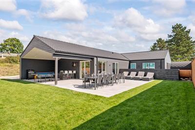 4,0Familiesommerhus med stor, dejlig have, hvor der er god plads til boldspil og leg. Der er flere terrasser som gør at man kan følge solen når den er fremme. Skal der laves mad udendørs kan det også lade sig gøre, da huset har en havegrill. Fra køkkenet er der