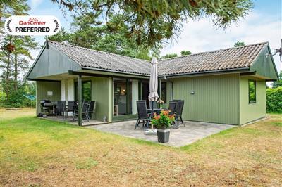 3,0Sommerhus beliggende ved skov. Lyst indrettet med komfortable møbler. Der er installeret varmepumpe, som kan fungere som aircondition om sommeren og genanvende varmen om vinteren. Huset er beliggende på stor naturgrund med overdækket terrasse. Udlejes ikke