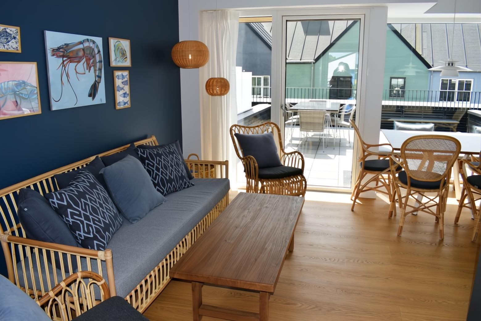 Velkommen til Kerteminde Havneferie Lys og moderne ferielejlighed beliggende ved Kerteminde Havneferie. Lejligheden er fordelt over 1. og 2. sal og indrettet med fokus på kvalitet og komfort. På 1. sal byder lejligheden på en hyggelig stue med smart-TV (kun