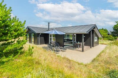 På skøn klitgrund tæt på stranden, finder I dette pragtfulde, unikke og hyggelige feriehus med loft til kip. Fra såvel åben som overdækket terrasse, kan fred og ro nydes. Fremhæves kan først og fremmest aktivitetsrum med bl.a. bordtennis og pool bord.