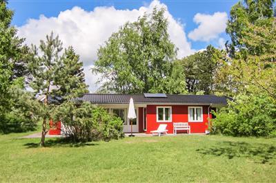 3,2Sommerhus beliggende på naturgrund med træer. Stort, moderne badeværelse med spabad, sauna, bruseniche, håndvask og toilet. Mindre badeværelse med brus, håndvask og toilet. Huset er indrettet i skandinavisk stil med moderne møblering. Huset har fiberbredbånd.