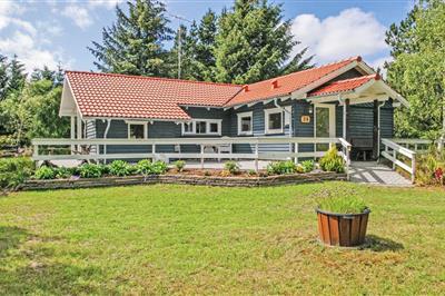 3,0I dejligt naturskønt område ligger dette feriehus på stor børnevenlig grund. Huset er praktisk indrettet og fremtræder lyst og indbydende. Fra stuen er der udgang til skøn terrasse med udsigt ud over naturområdet. En del af terrassen er overdækket og giver