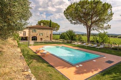 Dette skønne feriehus med pool ligger nord for Arezzo. Glæd jer til dette rummelige hus, som er ideelt til en ferie med storfamilien eller familier, der er venner. Det traditionelle stenhus skinner i et lyst og moderne lys indeni, som er understreget med