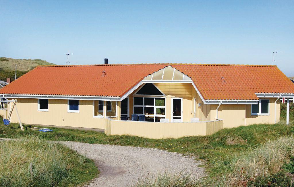 4,0Med Vesterhavet som nærmeste nabo har denne perle af et feriehus en super beliggenhed på en stor kuperet klitgrund, hvorfra der over klitterne er direkte adgang til stranden. Huset passer flot ind i klitlandskabet. Fra den østvendte terrasse er der udsigt til