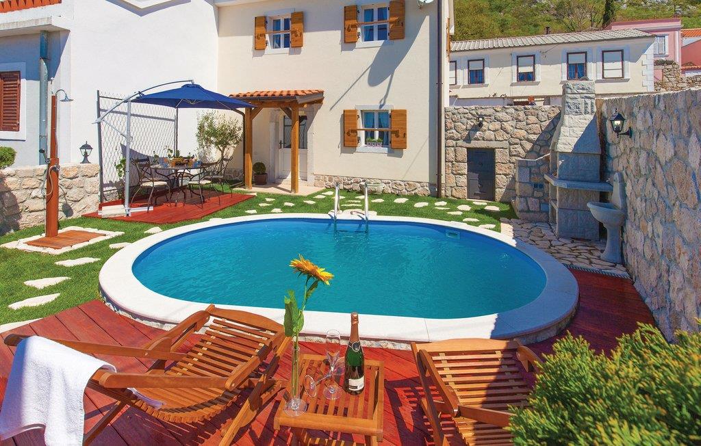 Dette attraktive feriehus ligger i Baretici, i den berømte ferieby Crikvenicas fredelige bagland. Den harmoniske indretning og de rolige omgivelser er perfekte til familieferie. På første sal er der soveværelser og badeværelset med laveste loftshøjde på ca.