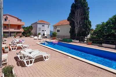 4,5På øen Ciovo ligger dette komfortable feriehus. Det består af to adskilte lejligheder, der er forbundet med udvendige trapper. De har hver to soveværelser, et badeværelse og et køkken med dagligstue. Store overdækkede terrasser giver skygge nok på varme