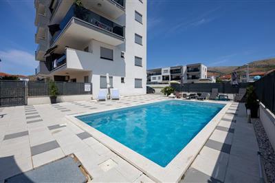 Sæt hverdagen på pause og slap af i denne skønne ferielejlighed med fælles pool. Rejs til Trogir med forventning, for en stilfuld pause venter jer i denne moderne ferielejlighed. Den smagfulde indretning med sans for detaljer skaber en harmonisk atmosfære,
