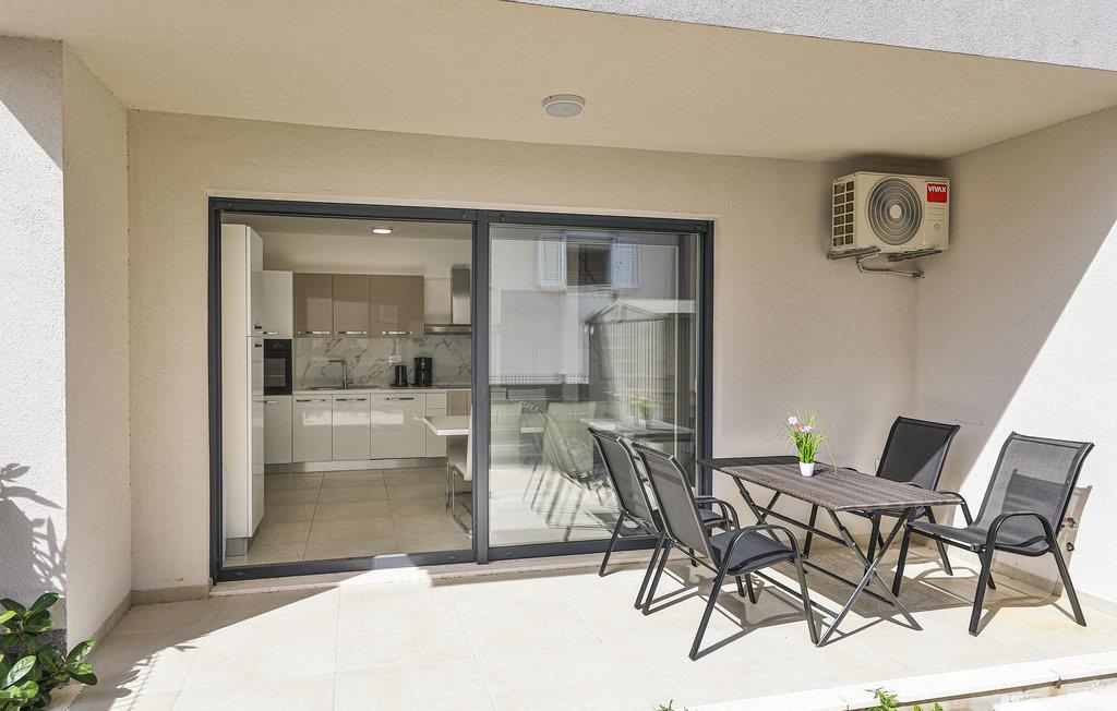 Funktionel lejlighed med stor terrasse i Trogir. I finder den praktiske ferielejlighed på 1. sal. Der er to køkkener, hvor I kan tilberede dagens måltider. I kan tage sætte jer med jeres ferieretter på+ den store terrasse. Her har I god plads og kan nyde