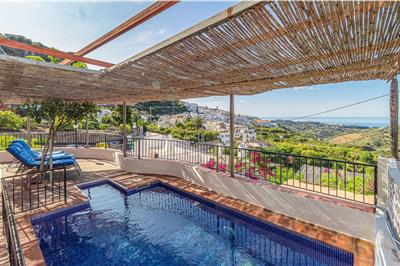 På en bjergskråning, omgivet af et smukt bjerglandskab med olivenlunde og Middelhavet som baggrund, er dette fantastiske feriehus med privat pool i Frigiliana, hvor du kan nyde absolut ro og tilbringe en uforglemmelig sommer med din familie eller venner. Fra