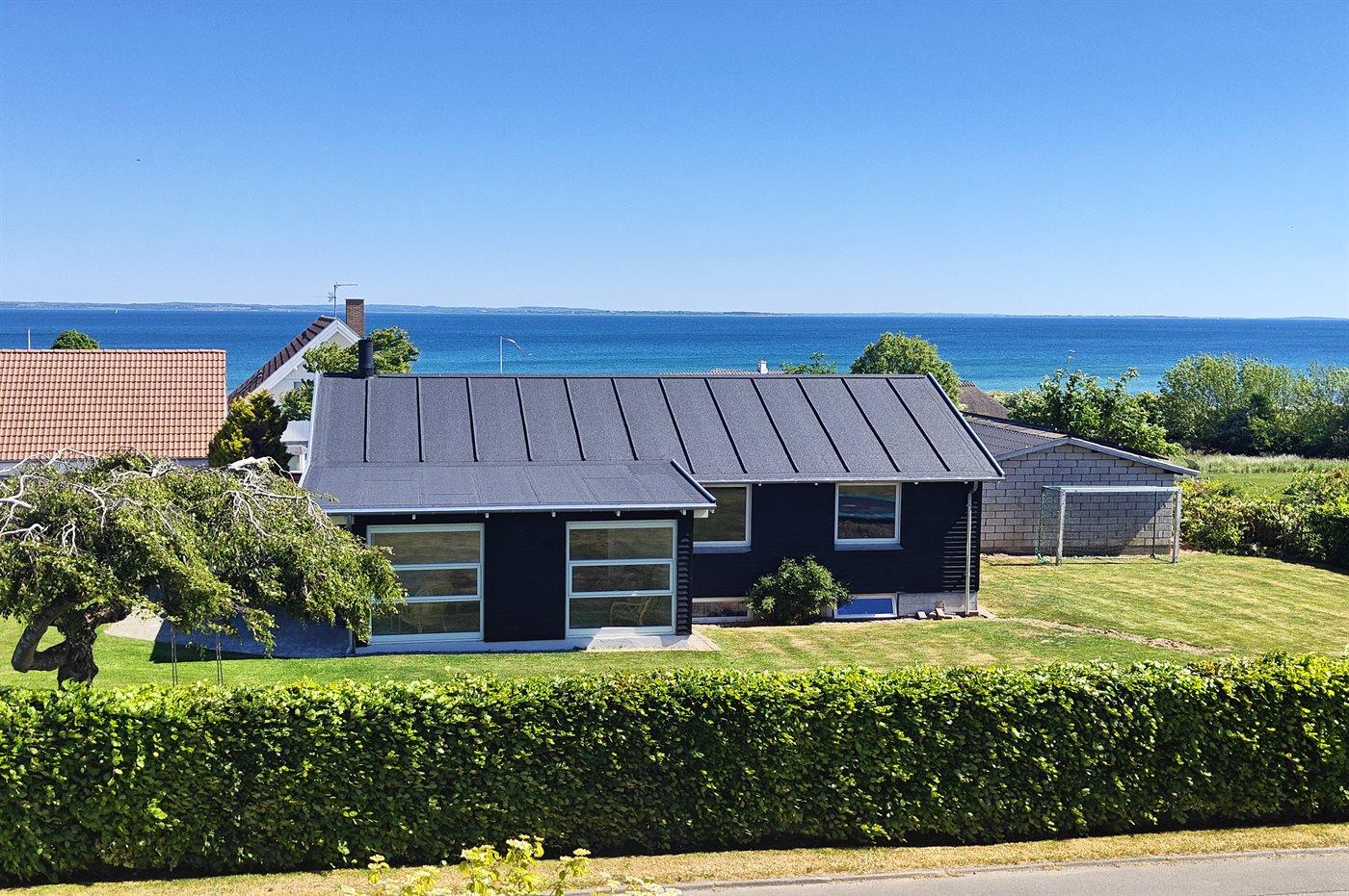Sommerhus med panoramaudsigt over Lillebælt. Feriehuset har en fantastisk beliggenhed ved Fynshav Strand og en skøn udsigt over Lillebælt. Stranden er børnevenlig og det er oplagt at medbringe et paddleboard. Sommerhuset gennemgik en større renovering i