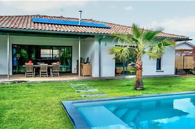 4,2Villa i Frankrig ved golfbane med pool Bolig: Charmerende Landaise-stil komfort ved kysten Beliggende ved siden af de frodige fairways på Gujan-Mestras golfbanen, blander dette lyse og rummelige feriehus lokal charme med moderne bekvemmelighed. Det er