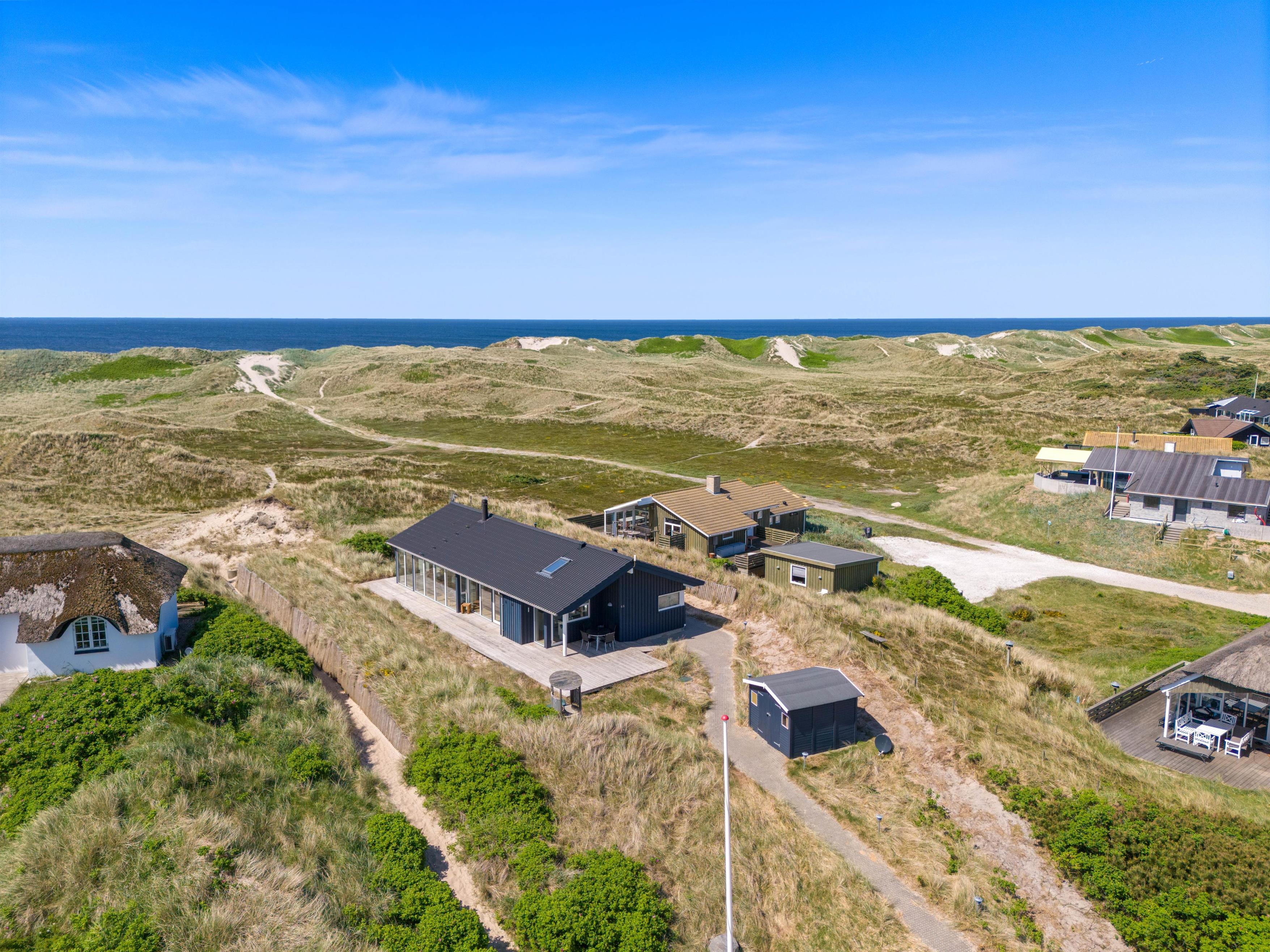 4,0Dette skønne sommerhus, opført i 2017, er beliggende som det sidste hus på en mindre grusvej, på en stor naturgrund helt op til fredningslinjen og tæt på det skønne Vesterhav. Huset er indrettet med et lyst kombineret køkken og stueområde, fire soveværelser,