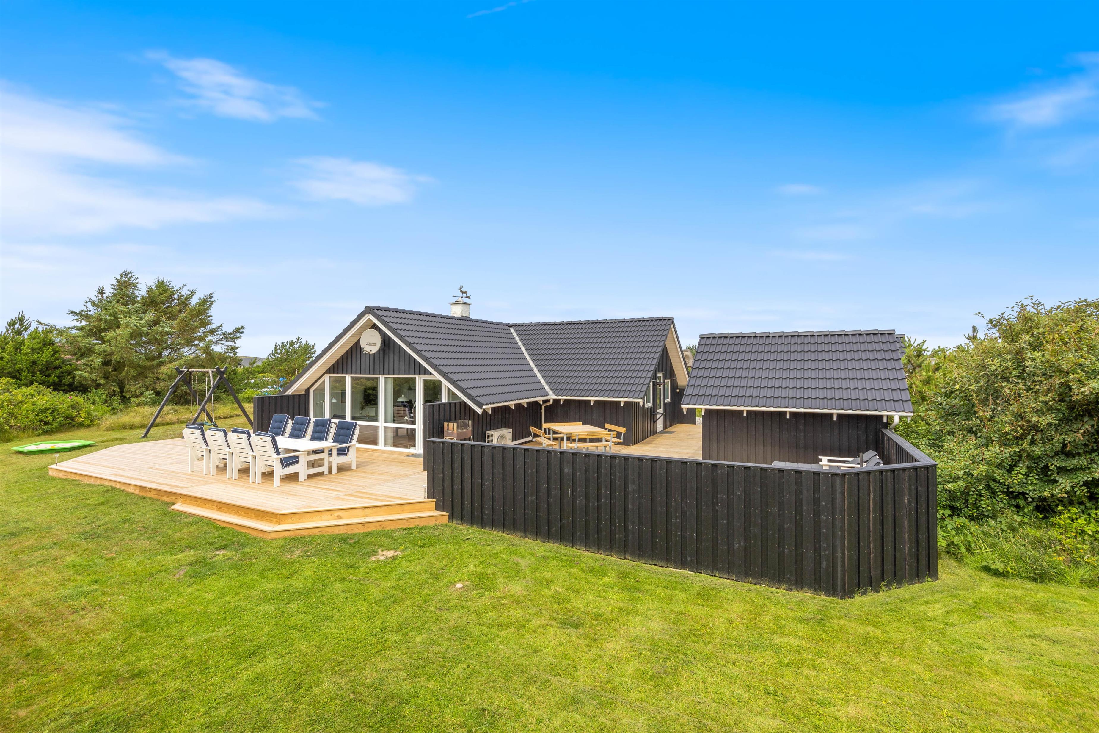 4,0Holmsland Klit, der skiller det brusende Vesterhav fra Ringkøbing Fjords rolige vand, er et ferieparadis med utallige aktivitetsmuligheder som supplement til den utrolig fine sandstrand og klitterne. Her finder I dette fantastiske feriehus indrettet med to
