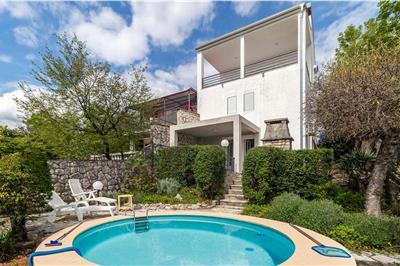 Velkommen til dette hyggelige feriehus med adgang til poolen til en dejlig ferie ved havet. Huset er smukt beliggende på en bakke i den lille by Klanfari, nær Crikvenica, og tilbyder en fantastisk havudsigt, som kan nydes fra terrassen. Gør jer komfortable i