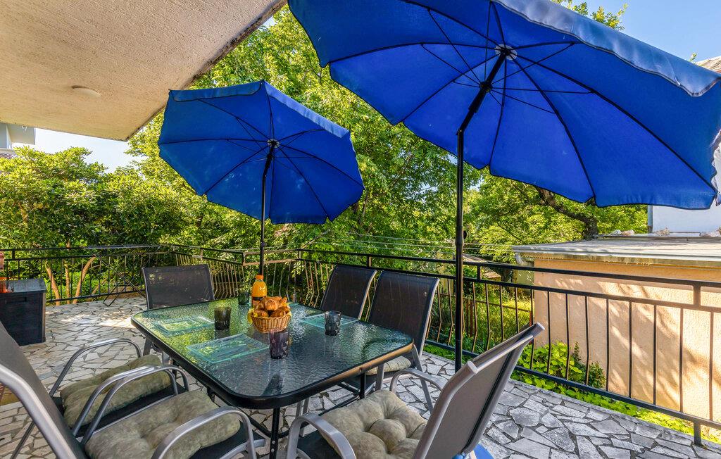 Skøn lejlighed med udsigt over landskabet kun få hundrede meter fra stenstranden. I finder denne skønne ferielejlighed på første sal i et hus på den østlige side af Kvarnerbugten. Det er lyst møbleret og veludstyret og byder på ideelle forhold for en