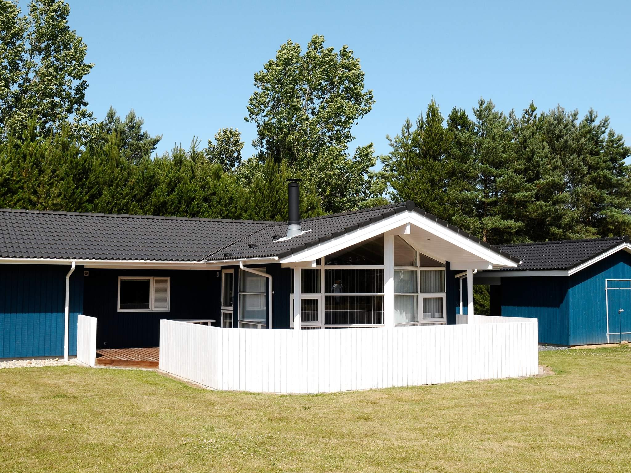 4,0Rummeligt sommerhus roligt beliggende på en stor grund for enden af lukket vej. Indrettet med hyggelig møblement. Der er rummelig opholds- og spisestue i åben forbindelse med køkkenet og med et stort, vestvendt vinduesparti med udsigt til den omkringliggende