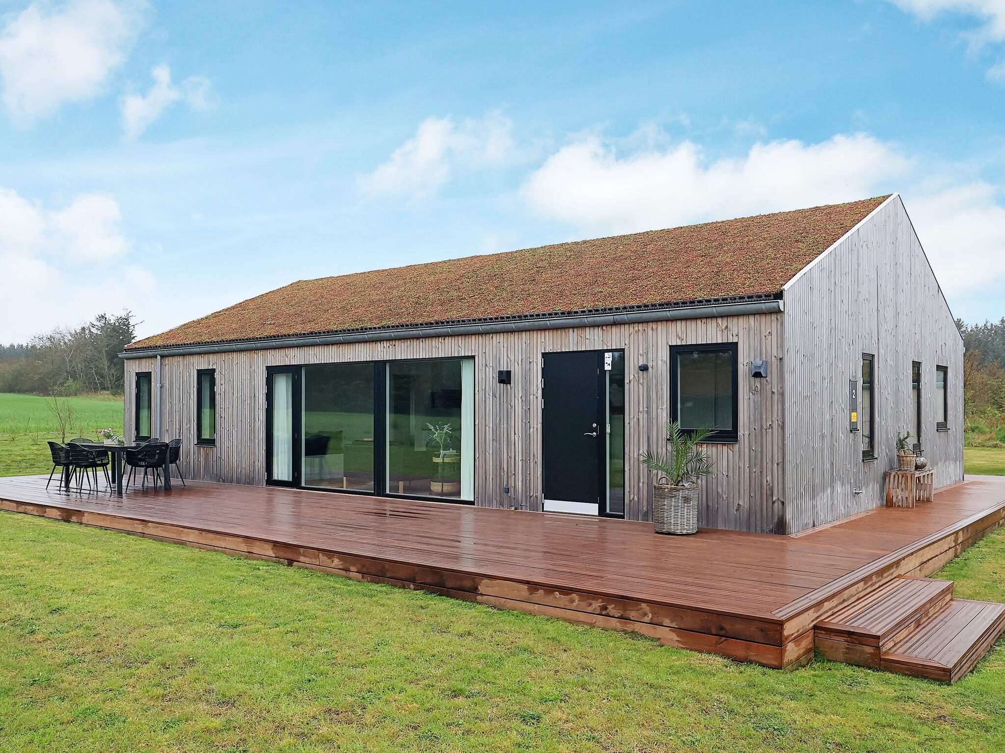4,4Dette moderne feriehus nær Grønhøj Strand er et lyst og rummeligt feriested designet til afslapning og familiehygge. Beliggende på en stor naturgrund, byder den på smuk udsigt gennem sine generøse vinduer og masser af udendørs plads til solbadning, grill