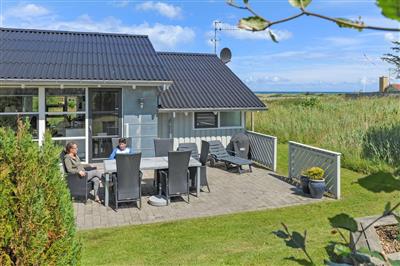 4,9Skønt og velindrettet sommerhus beliggende i rolige omgivelser med udsigt til havet fra såvel hus som grund. Indretning Sommerhuset egner sig til 6 personer samt 1 barn op til 3 år. Ferieboligen er på 95 m² og er bygget i 1993. I 2016 gennemgik