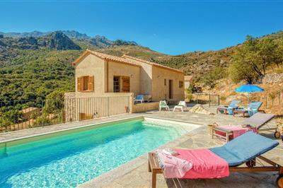 4,0Dette smukke feriehus med privat pool og udsigt til det smukke landskab ligger i hjertet af bjerglandsbyerne på Balagne. Villaen er komfortabelt møbleret og har rummelige samt moderne værelser og badeværelser. I højsæsonen er der masser af liv i landsbyen