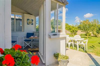 Tilbring en afslappende ferie i denne praktiske havelejlighed med masser af plads omgivet af grønne områder. Opholdsstuen er funktionelt indrettet og kan fleksibelt opdeles i et sove- og opholdsområde ved hjælp af en skydevæg. Slap af i sofaen og planlæg