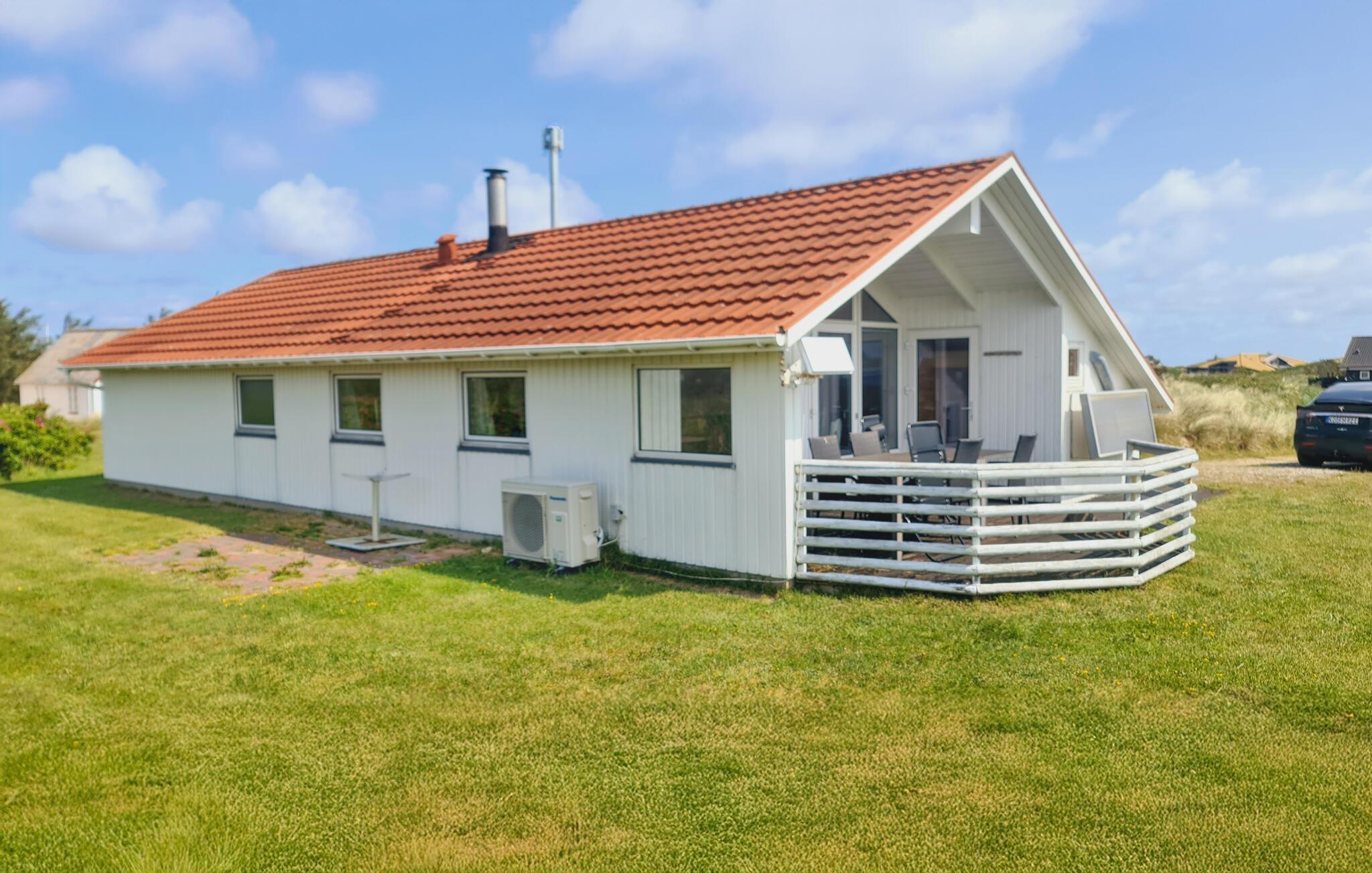 3,3Dette smukt renoverede feriehus ligger på en klitgrund med delvis udsigt over Vesterhavet og byder på fredfyldte og naturskønne omgivelser for en afslappende ferie. Fra den glaserede terrasse kan gæsterne nyde en fantastisk udsigt over havet og betagende