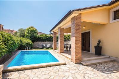 Familievenligt feriehus med swimmingpool i udkanten af Medulin. Rejs til den sydlige del af Istrien og hold en dejlig familieferie i dette stilfulde og veludstyrede hus. Her vil alle vil føle sig godt tilpas, og der venter dejlige dage såvel indenfor som