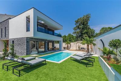 Den luksuriøse og moderne villa Bonaca ligger i Medulin ikke langt fra Pula, kun 1,2 km fra havet. I sin smukke atmosfære kan villaen rumme i alt 8 personer. Det moderne interiør med store glasflader giver villaen en følelse af luftighed og friskhed. Villaen