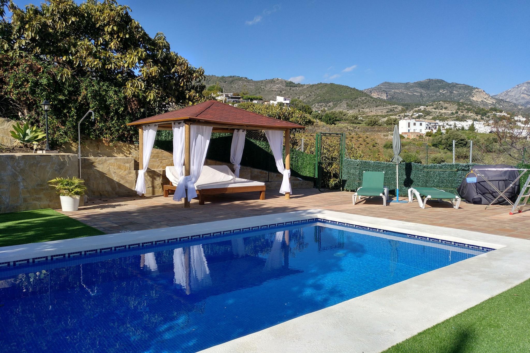 Villa i Nerja med pool nær Burriana Strand Bolig: Denne smagfuldt møblerede villa med udsigt over bjergene har rummelig og privat indkvartering med to soveværelser – hver med to enkeltsenge – og kan rumme op til fem gæster med en ekstra seng. Ideel til