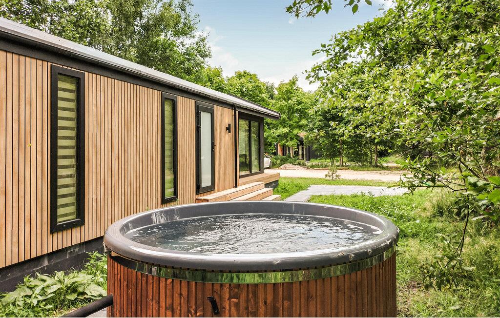 Hold en afslappende ferie i dette komfortable feriehus med udendørs wellnessfaciliteter. Dette moderne og indbydende feriehus byder jer velkommen til fredelige, naturlige omgivelser. Herfra kan I nyde vidunderlige gå- og cykelture i det omkringliggende