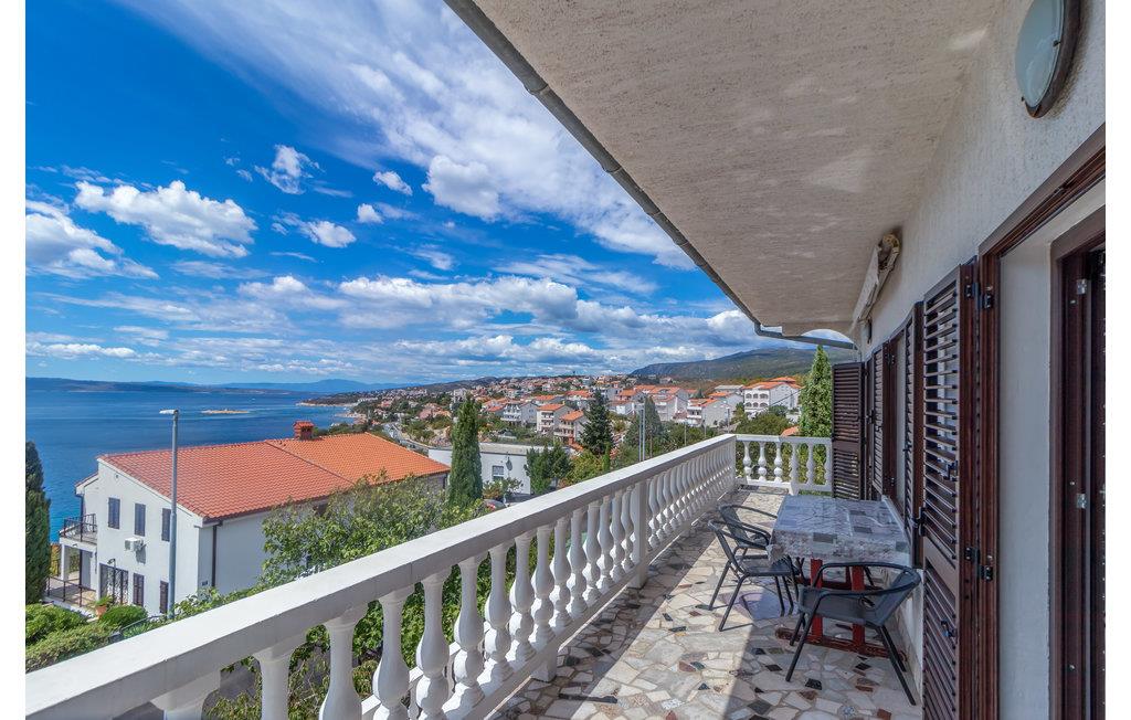 5,0I Novi Vinoldolski kan vi tilbyde jer denne ferielejlighed på anden sal i en ejendom. Herfra er der en smuk udsigt over havet og byen fra den store terrasse, hvor I kan sidde om aftenen med dem I holder mest af og nyde et godt glas vin. Slap af ved havet og i