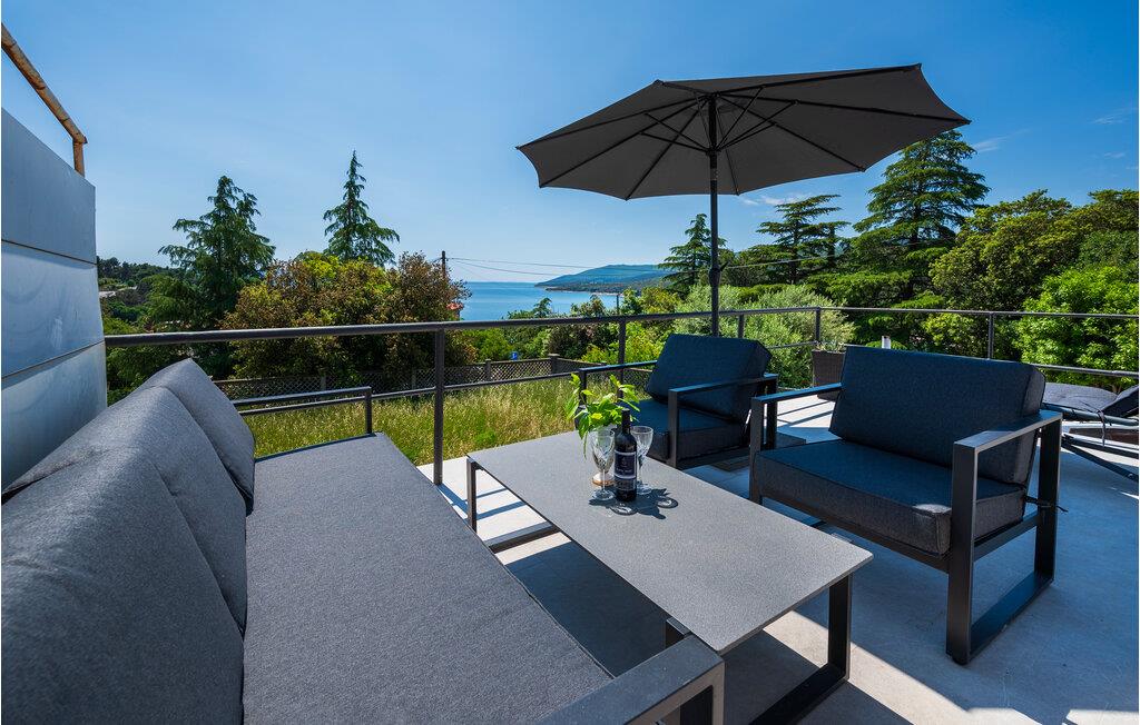 Denne smukke villa er bygget i typisk middelhavsstil og ligger i Rabac, som er kendt for smukke stenstrande med krystalklart hav og udsigt over Kvarnerbugten samt øerne. Huset ligger i udkanten af byen på en bakke i et grønt område med middelhavsvegetation