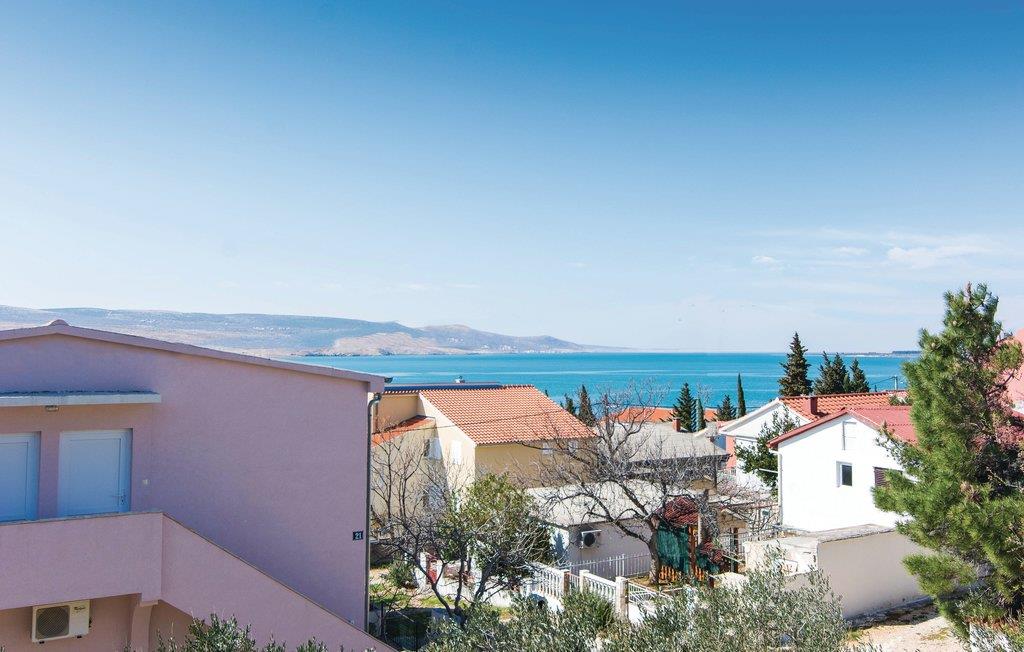 5,0Denne praktisk indrettede ferielejlighed ligger på første sal i en privat ejendom i Rovanjska. Fra den store overdækkede terrasse har I en fantastisk panoramaudsigt over havet og landskabet. Huset ligger i nærheden af hovedgaden. Området byder på fascinerende
