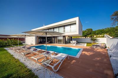 4,0Dette komfortable feriehus med swimmingpool og udsigt over Rovinj til Adriaterhavet byder jer velkommen i de idylliske omgivelser i Rovinjsko Selo. Nyd en skøn ferie i dette store feriehus. Tilbring en god ferie sammen med jeres store familie i dette